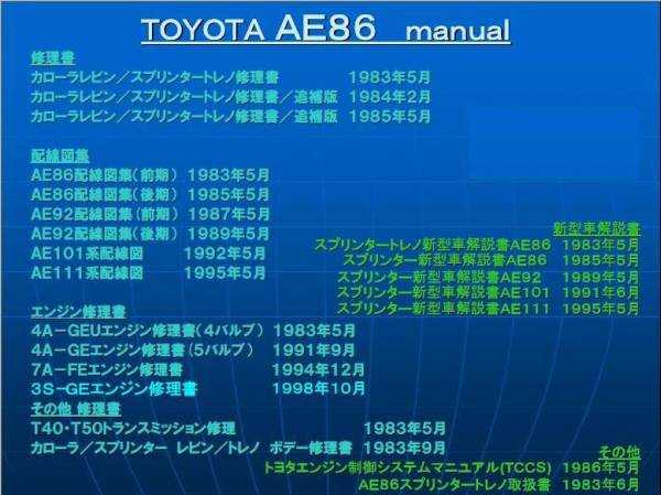 整備書パーツカタログ内容