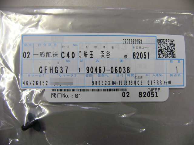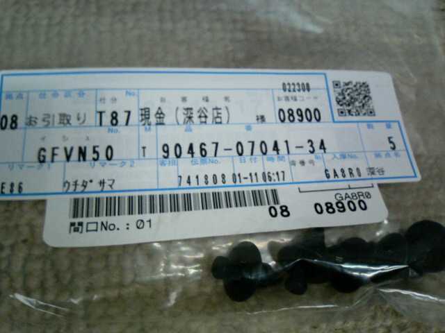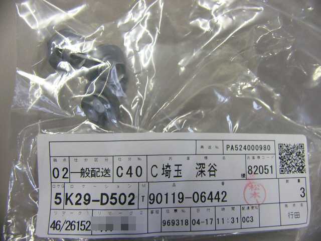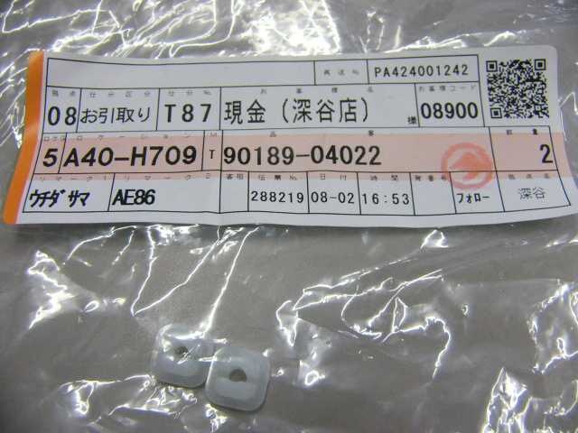 | 90189-04022 | グロメット | 2? | 2 | コーナーランプ止め | 60 | 2009/08/06 | |
