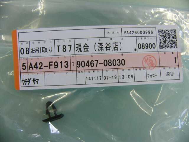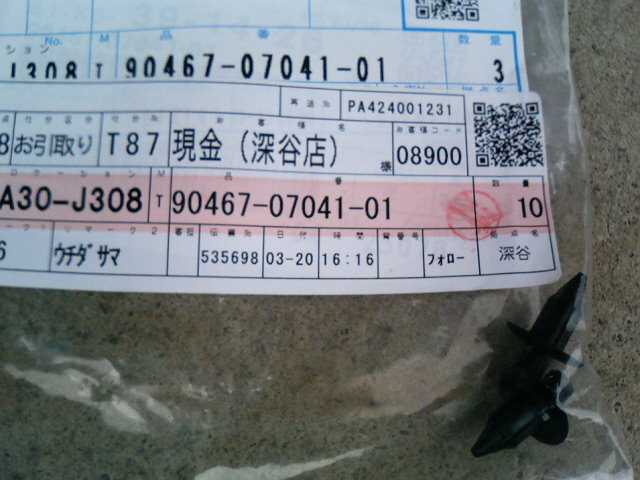 | 90467-08030 | ボンネットシールクリップ | 6? | 1 | ボンネット受けラバーのクリップ | 90 | 2009/07/19 | |