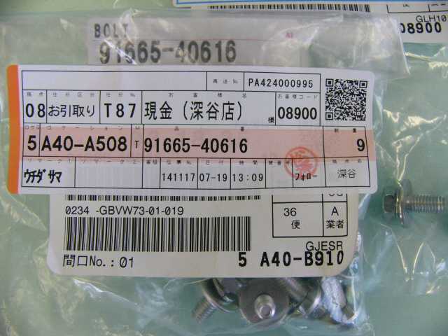 | 91665-40616 | ボルト | 12 | 12 | フェンダー用 | 60 | 2009/07/19 | |