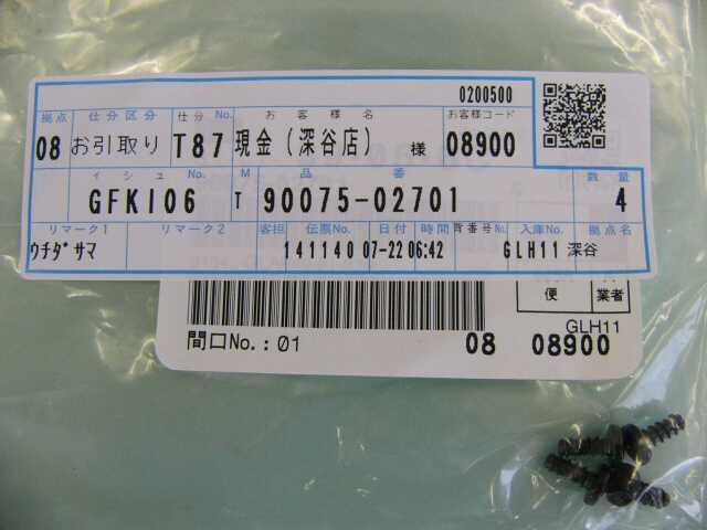 | 90075-02701 | スクリュー | 4 | 4 | ライトアイライン用 | 100 | 2009/07/19 | |