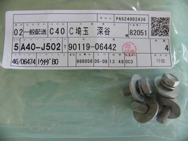 | 90119-06442 | ボルト | 3 | 3 | ウオッシャータンク固定 | 60 | 2009/08/08 | |