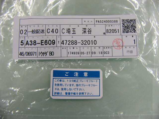 | 47288-32010 | シール | 1 | 1 | ブレーキフルード | 2010/05/30 | ||