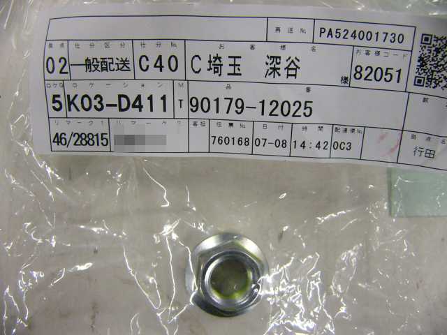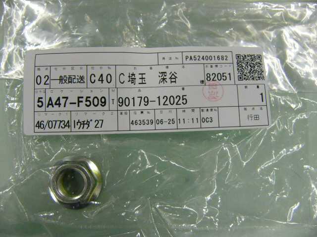 | 90179-12025 | ナット | 1 | 1 | ↑ | 2010/06/26 | ||