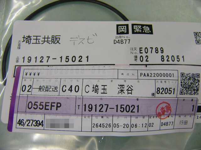 | 19127-15021 | O-RING | 1 | 1 | デスビ | 2016/11/23 | ||