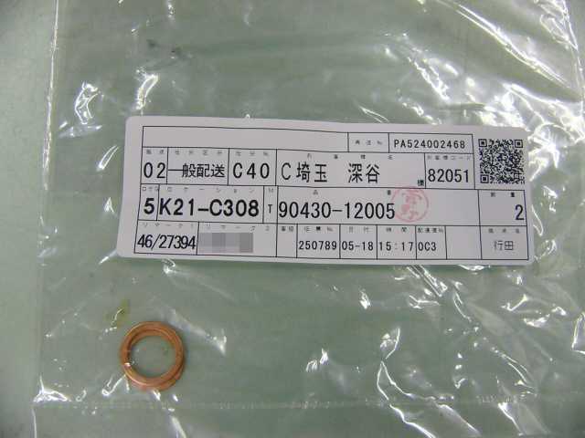 | 90105-10023 | ボルト | 2 | 2 | 触媒 | 2014/06/15 | ||