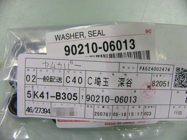 | 90159-50162 | ボルト | 4 | 4 | 給油口 | 2016/07/23 | ||