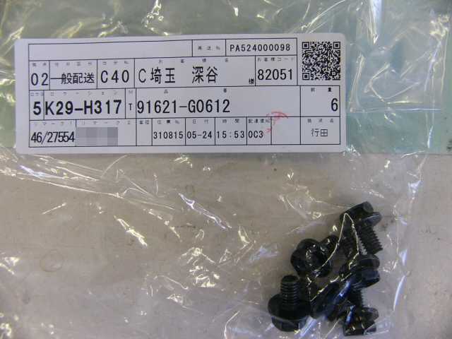 | 91665-40616 | ボルト | 6 | 6 | フェンダー | 60 | 2009/08/08 | |