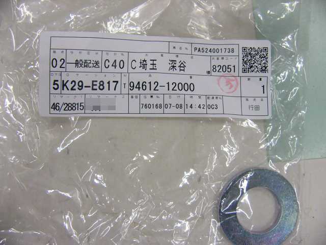 | 94612-12000 | ワッシャー | 1 | ラテラルロッド | 2010/06/26 | |||