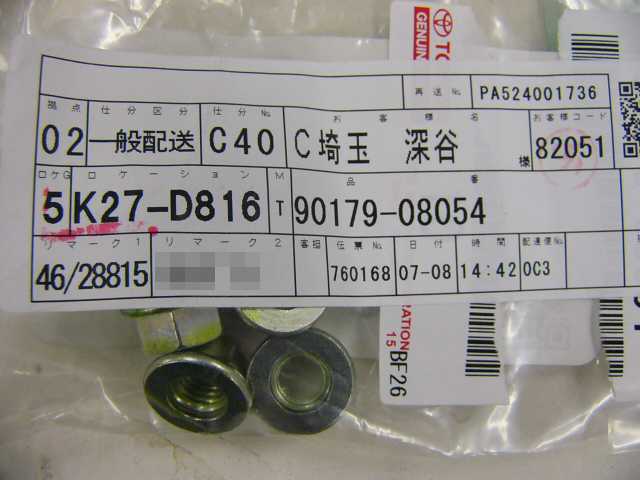 | 90179-05011 | ナット | 1 | 1 | ↑ | 70 | 2010/05/13 | |