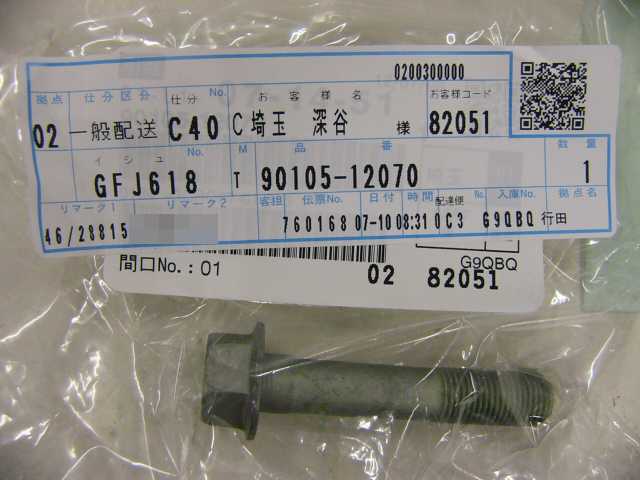 | 90105-12070 | ボルト | 1 | 1 | ↑ボディ側 | 2010/06/26 | ||