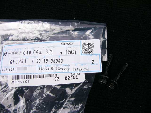 | 90119-06126 | ボルト | 2 | 2 | 助手席側足元内装 | 2014/06/15 | ||