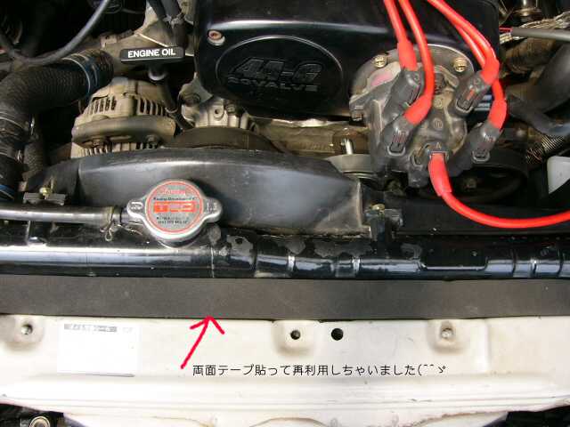 ラジターの隙間にスポンジを貼り付け。 ラジエターを外しているので剥がれていたのを、両面テープ貼って