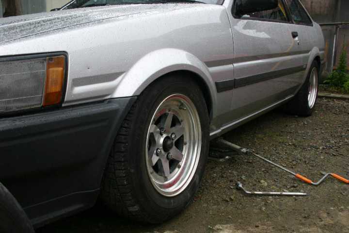 14-6J+13(実測値)かな? 残念ながら今の15ミリワイドスペーサーではホイル裏の逃げがないため装着できず…
