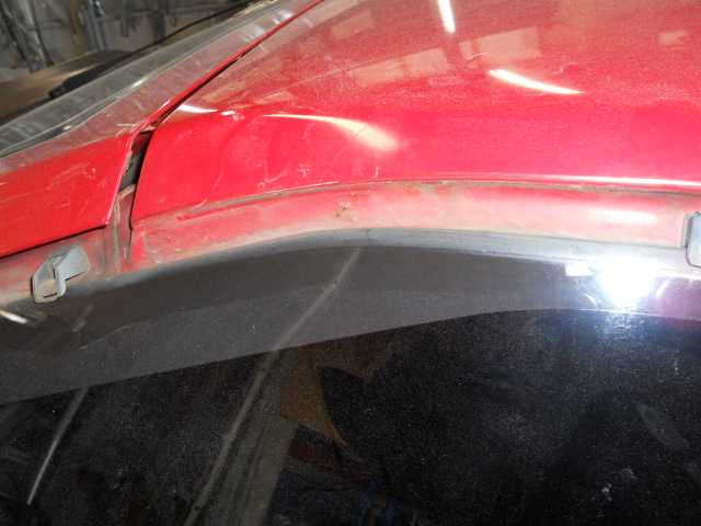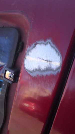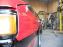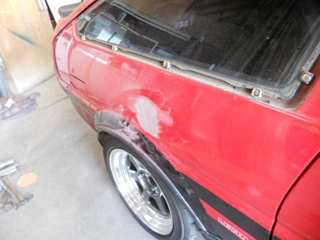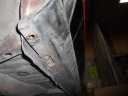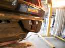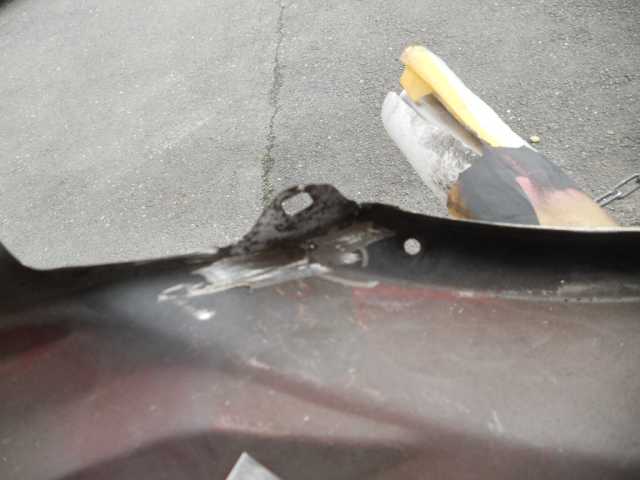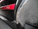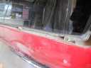 事故の修理2 リアハッチの修正跡 左フェンダーの錆、フェンダーモール新品