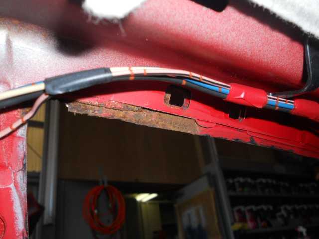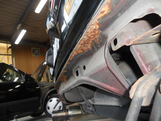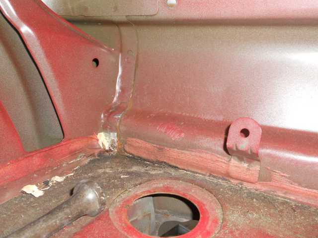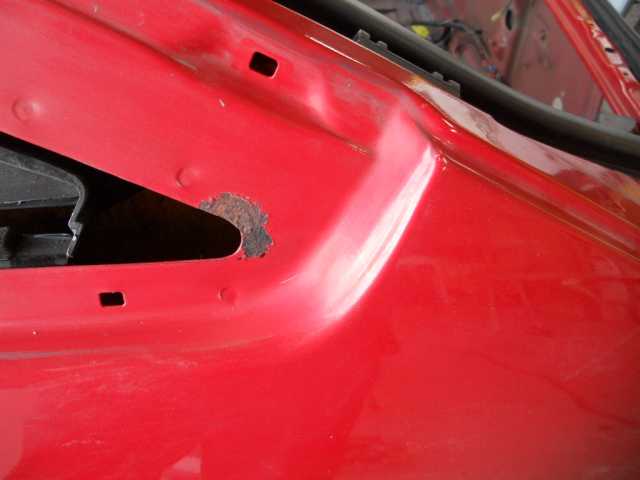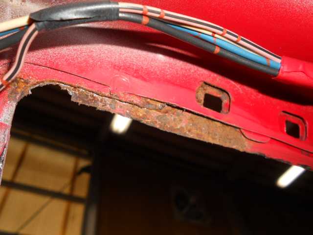左右クオーター錆び、リアハッチ 右クオーター内側錆び 錆びの穴埋め