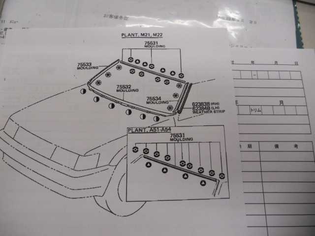 | 41 | 内装 | 2011/7/24 | ウエザーストリップ右ドア | 67861-12470 | 新品 | 1 | 2012/2/11 | 左右共通? | |