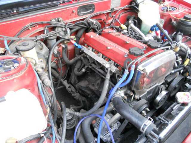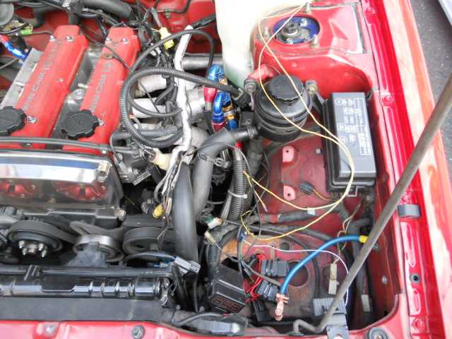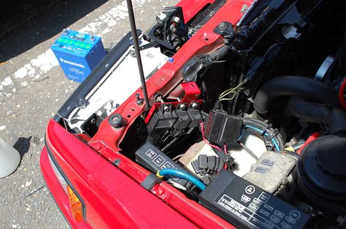エンジン最適化へ エンジンハーネス修正、補機類外し、電動ファン見直し