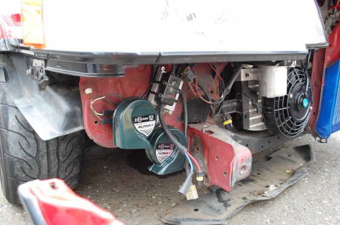 電動ファン用リレー作成 ホーン新調(移設)コンデンサーファン、燃圧