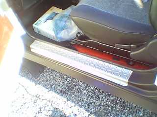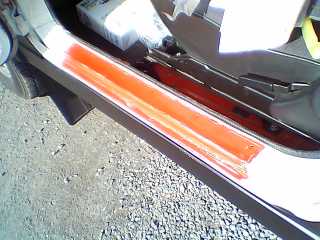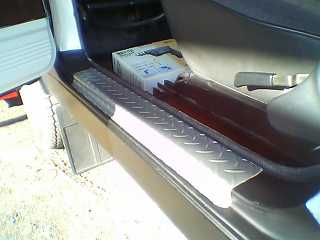 ドアのステップに怪しいゴムが付いていたのでいさおさんと同じく縞鋼板もどきのゴムを貼ることに! ゴムの下が腐っているのでは?と恐る恐る剥がしてしたらぜんぜん腐ってはいなかったものの、強力な両面テープで固定されていて剥がすのに苦労しました(^^ゞ スクレーパー、マイナスドライバー、紙やすり、シンナーでやっと。。。 いい加減な仕上げでお得意なつや消し黒で塗装!ゴムはセキチューホームセンターで10センチ98円を2枚購入(^^♪幅を62センチに切り幅は8.5センチ、ゴムの裏面に両面テープを貼り付けていざ! 気温が低かったのでドライヤーでしっかり暖めて貼り付けました(^^♪けっこういいかも♪以外にゴムが厚かったので段をつけるのがちょっと。。。