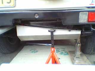 出来上がった試作品をさっそく取り付けてみることに!はたして? 一人で作業のためタンクが落ちてこないようにとジャッキで押えることに!これが後で悲劇に?(笑)3本のねじをはずして。。。?手前側の1本はすぐにはずれたのだが、奥の2本が。。。超固くて。。。また折れるのか?と心配したものの何とかはずれました。ただし明日は筋肉痛?これを機にボルト交換!!スズキに注文しました。さて、問題の寸法ですがとりあえず付いたものの右側が幅が広いような気がするので-20 (これのせいでジャッキが外れずに困りました)あはは。。。さすが素人! 後は手前がクリアランス不足で+10 奥が広いので-10 ドレンボルトの穴も加工してもらうことに。それくらいでしょうか? まずまずの一次試作だったでしょうか?(^^♪ これはオークションで売却する予定です。