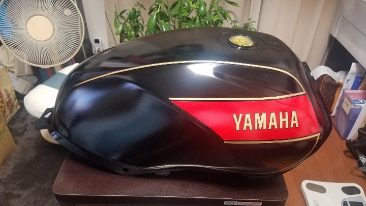 今回は黒縁のYAMAHAステッカーを貼って、失敗したところをなんとかリカバリーして