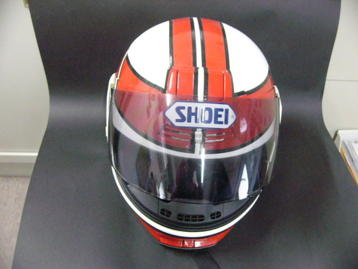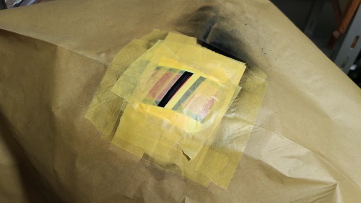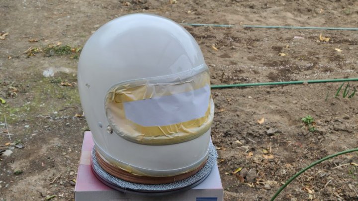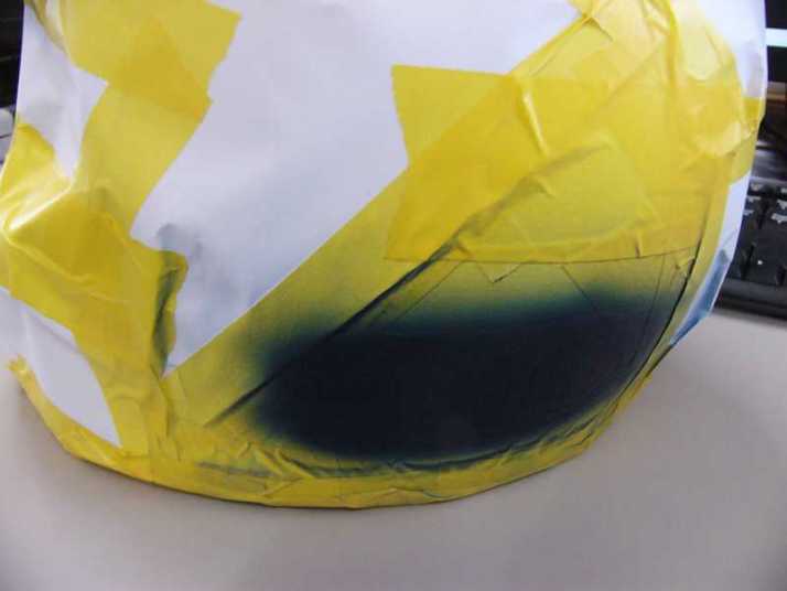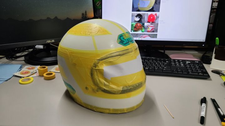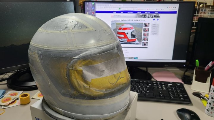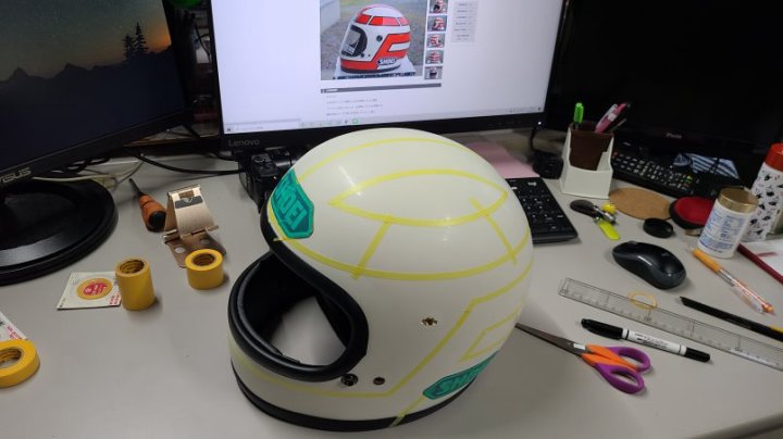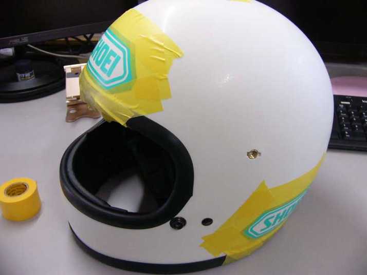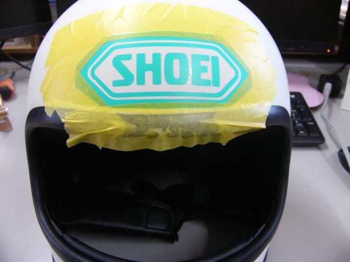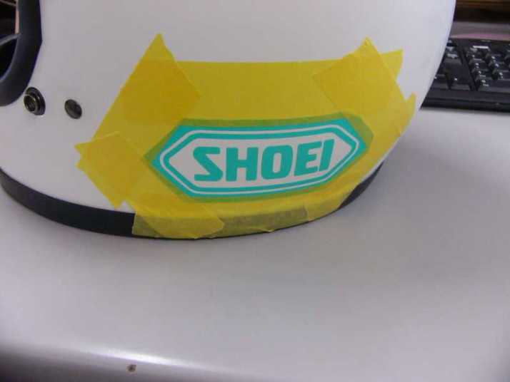 軽く足付けして作って貰ったSHOEIのマスキング貼って(前側は曲面がきつくて1回失敗)